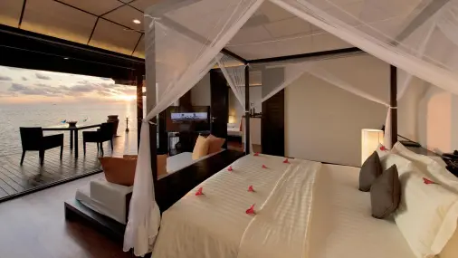 - Декориране на спалнята на младоженците със свежи тропически цветя;