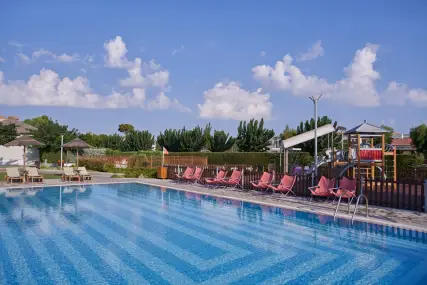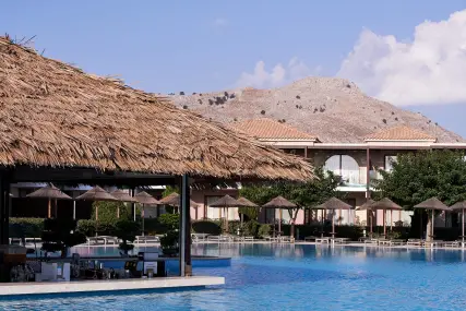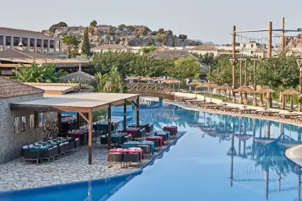 Ваканционно селище Родос се намира само на 250 м от плажа. Ние се стремим да създадем първите от следващото поколение хотели, които са напълно наясно с околната среда. Съчетава в себе си лукс, комфорт, просторна територия, дейности и забавления. Той е проектиран да предложи на всички едно незабравимо семейно изживяване.