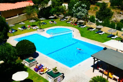 Хотелът се намира в покрайнините на Фалираки, заобиколен от красиви градини и на пешеходно разстояние от района за пазаруване, развлечения и нощен живот, където разнообразие от барове и ресторанти ще предложат на гостите най-добрите местни продукти. Общественият транспорт е на пешеходно разстояние от хотела, а международното летище Диагорас е на 18 километра, около 20 минути с кола. Гостите могат да обиколят острова с кола и бързо да открият неговите очарователни плажове и скали. Това е идеалното място за семейства и двойки, които искат да се насладят на прекрасни, релаксиращи и освежаващи празници. Всички стаи са с функционално разпределение и тихо местоположение с гледка към зелената околност, много светлина с дървени елементи и самостоятелен санитарен възел. Гостите могат да се освежат в открития басейн или просто да релаксират на шезлонгите.