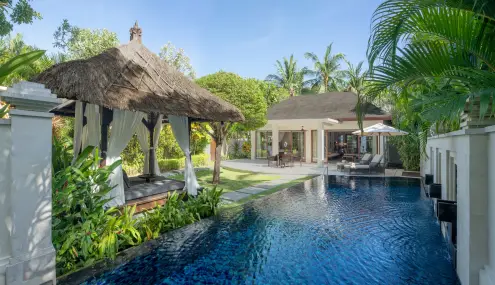 - Two Bedroom Villa - 850 квадрата площ, две спални, оборудвана кухня, собствен басейн с изглед към градината;