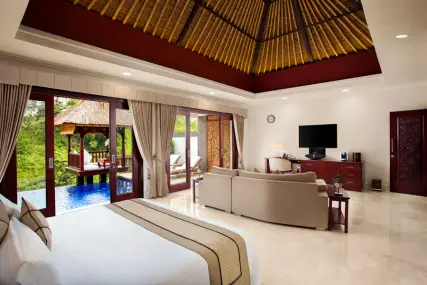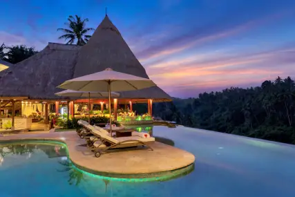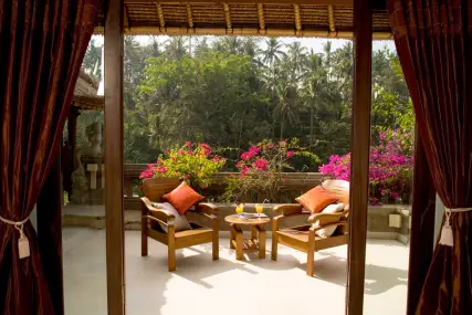 Хотелът е разположен на 5 минути от центъра на Убуд с невероятен изглед към зелената Долина на царете. През 2018г. курорта печели първо място в конкурса Condé Nast Traveller accolade за най-добър хотел в Света.