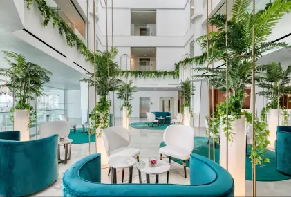 2 открити басейна, закрит отопляем басейн, 3 ресторанта, бар, сауна, фитнес център, Спа център, масаж, хидромасажна вана, парна баня, градина, велосипеди под наем, вечерни забавления, денонощна рецепция, обменно бюро, химическо чистене, помещение за съхранение на багаж, безплатен wifi, климатик, отопление, шумоизолация, румсървис.