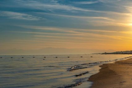 Собствен, пясъчeн. Чадъри, шезлонги, матраци и плажни кърпи на плажа и при басейна - безплатно.