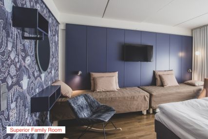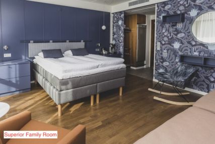 Фамилните супериор стаи са с площ от 29 кв.м. и разполагат с двойно легло и 2-3 детски допълнителни легла.