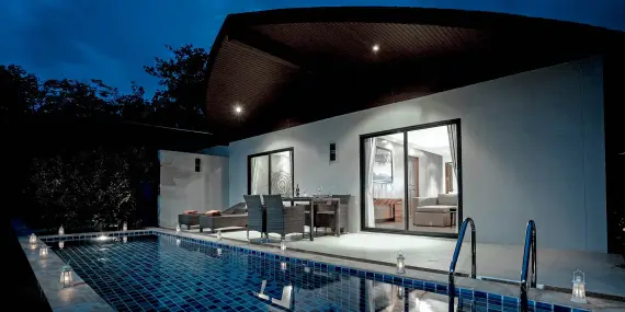 Разположен на частен плаж с гледка към Phang Nga Bay на 5 минути с кола от Пукет.