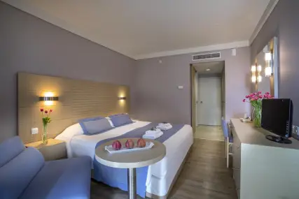 Удобствата се допълват от детски клуб, ежедневна аниматорска програма и спа център с хидромасажни вани, сауна и масажни процедури.