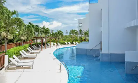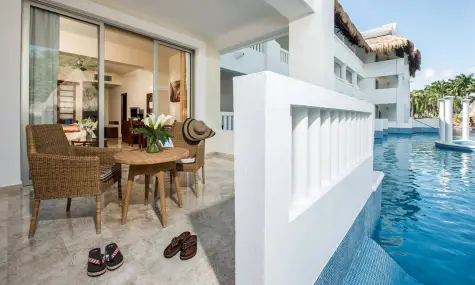 134 Deluxe Junior Swimout (13+) - 55 кв.м., разположен на партерния етаж, директен достъп до басейна от терасата, спалня, кът за сядане с диван, баня с джакузи, тераса с шезлонги, макс. 3 души.