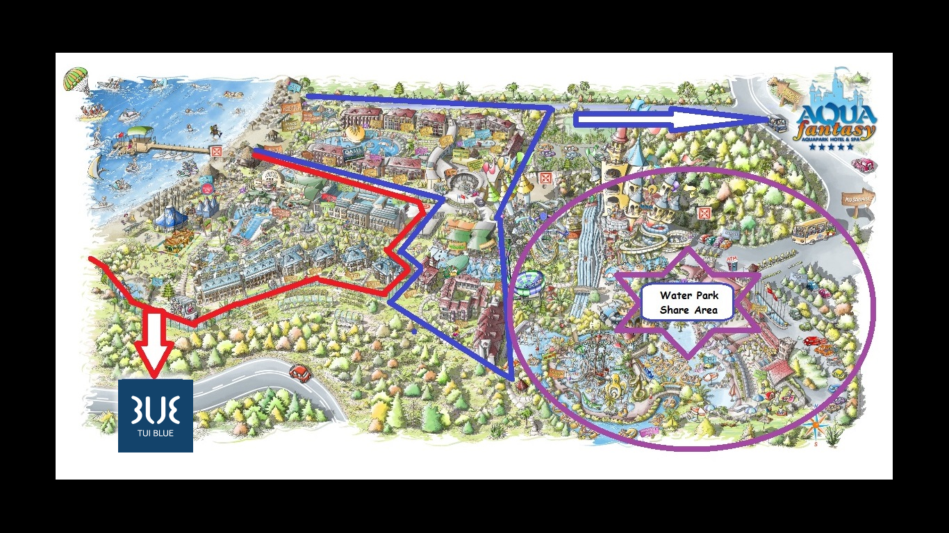 На гостите на хотела е осигурен неограничен безплатен достъп до Аквапарка, който разполага с 31 водни пързалки, от които няколко екстремни (Super combo,Screamer, Crazy Raft, Boomerango, Space Bowl и др.), басейн със 7 вида изкуствени вълни, 400 метра дълга Lazy River, Lily Pad - място за срещи на родители и техните деца, а за по-малките деца са налични: голяма детска зона с Treasure Island; Pirate’s Ship с 6 пързалки и интерактивни играчки, комплекси от пързалки Submarine Octopus, Frogslide и Wreckship.