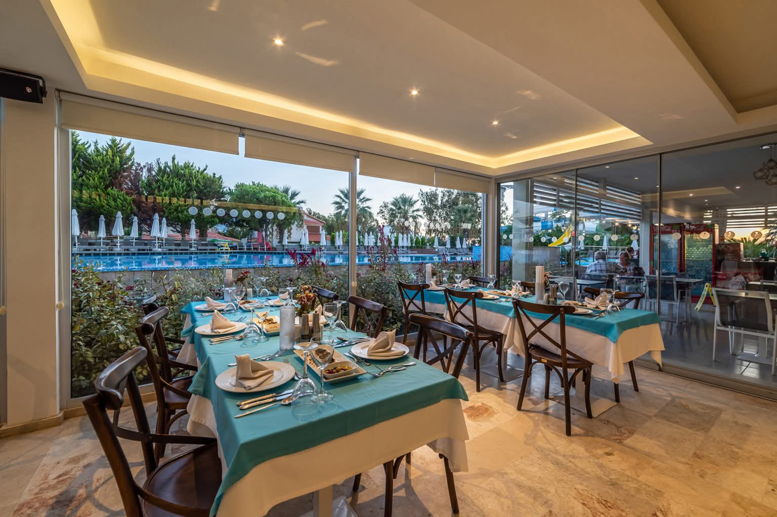 Основен ресторант, 2 а-ла-карт ресторанта (срещу заплащане, с предварителна резервация), 3 бара, сладкарница, дискотека (напитки срещу заплащане), 4 открити басейна, 2 закрити басейна (единият от тях е oтопляем), аквапарк с 3 водни пързалки, СПА център, мултифункционално игрище, магазини, паркинг.