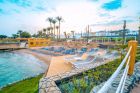 Собствен, пясъчен. Чадъри, шезлонги и плажни кърпи на плажа и при басейна - безплатно.