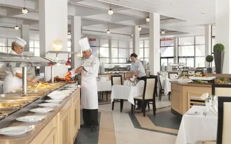 Хотелът разполага с три ресторанта, кафене, лоби бар, седем различни тематични програми, седем пъти седмично, два открити и един закрит басейн, масаж, сауна, бадминтон, билярд, джакузи, фитнес, парна баня, тенис на маса, мини клуб, бюфет за децата, детегледачка (на запитване).