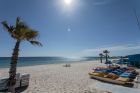 Собствен, пясъчен. Чадърите и шезлонгите на плажа и басейна - безплатно, матраци - срещу заплащане. Плажни кърпи не се предлагат.