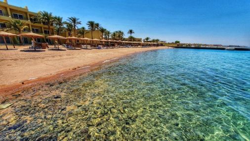 Palm Beach Resort 4* е обзаведен в модерен стил, а обстановката и атмосферата са традиционни за Египет. Хотелът разполага с прекрасни гледки към Червено море, с 2 басейна, собствен пясъчен плаж и клуб по гмуркане. Гостите на хотела имат на разположение още: ресторант с международна кухня, бар с напитки и леки закуски, релаксиращи масажи, сауна и фитнес, екип от аниматори, организиращи различни занимания и игри през целия ден. Центърът по гмуркане - The Caves, предлага различен тип водни спортове, като гмуркане, шнорхелинг и уиндсърф.