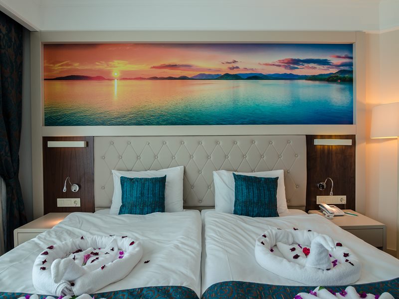 Хотелът разполага с общо 331 стаи, разположени в 6-етажна основна сграда, 301 стандартни стаи, от които Standard room land view (с изглед суша - 28 м2), Standard Room Side Sea View (частичен изглед море - 28 м2), 3 Handicapped room (пригодени за хора с ограничена подвижност, с изглед градина - 24 м2), 12 Family room (2 спални, 2 бани - 60 м2), 15 Deluxe room R.O.H (с изглед градина - 32 м2).