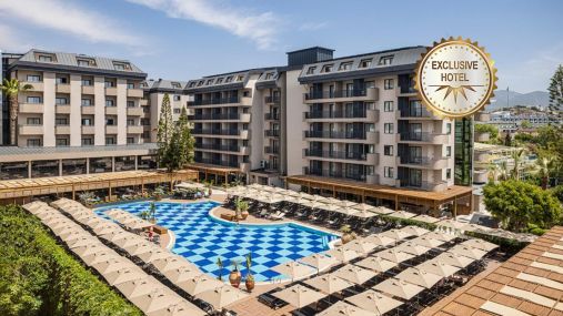 Разположен на 110 км от летище Анталия, на 12 км от центъра на Алания и на 800 м от Конаклъ, на 150 м от брега на морето. Реновиран през 2024 г.