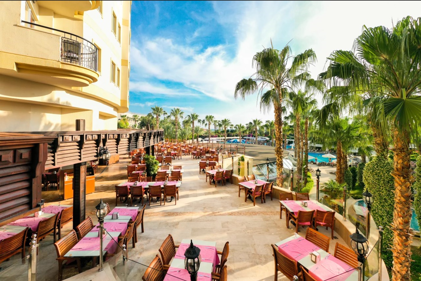 Намира се на 90 км от летище Анталия, на 100 км от центъра на Анталия, на 35 км от центъра на Сиде, на брега на морето. Построен 2007 г., на обща площ от 30 000 м2. Частично реновиран 2023/2024 г.
