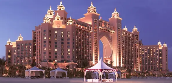 Първият хотел на Палмата в Дубай, „събрат” на Atlantis Paradise Island Bahamas, отвори врати в края на 2008г. Atlantis The Palm е хотел на стойност 1.5 милиарда долара, луксозен, стилен, изискан, в арбски стил. Хотелът предлага пълен релакс, но и достатъчно адреналин, както за двойки, така и за семейства с деца. Уникален изглед към пристанището, невероятен воден парк, впечатляващи бели плажове, кухня на световна класа, изтънчен Spa център и космополитни бутици. Да гостуваш в този хотел е като да сбъднеш много свои мечти.