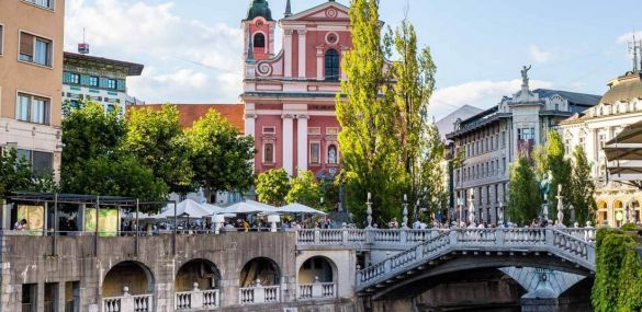 Около обяд - пристигане в Любляна. Разглеждане на Любляна: Пешеходна обиколка на града с екскурзовод на български език – францисканската църква „Благовещение", Кметството, Университетът, Тройният мост, катедралата „Св. Николай", крепостта. Настаняване в хотел в или в околности на Любляна. Нощувка.