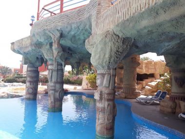 На територията: Разполага с основен ресторант, бар, снек бар, 2 открити басейна, частен плаж, тенис кортове, билярд и спа център с масажни процедури.