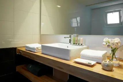Всички стаи са оборудвани с климатик, отопление, телевизор с плосък екран със сателитни канали, безплатен wifi, сейф, телефон, машина за кафе и чай, малък хладилник, баня с душ, безплатни тоалетни принадлежности, сешоар, тераса или балкон.