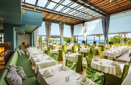Ilio Mare Seaside Resort is the perfect hide away, inside the lush vegetation and a stoneâs throw from the beach, for an unforgettable summer stay. Introducing two restaurants and three bars with a variety of unique flavors, rejuvenating spa services, Sports' courts and modern facilities for the safe entertainment of children, exceptional infrastructure with facilities suitable for wedding receptions and ceremonies, meetings-incentives-congresses-events, active experiences and an enchanting beach.