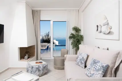 Our resort comprises luxurious self-catered villas of four different kinds (1, 2, 3, or 4 bedrooms), all with sea view and private pools. We offer 4 panorama suites (2 bedrooms) with shared pool, as well as 3 1-bedroom suites with sea view, also with a shared pool. You can also check our standard unique suites (1, 2 or 3 bedrooms), all with private pool.