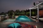 - Басейн с шезлонги и чадъри