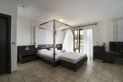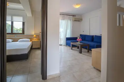 Idyllically located on the pine-covered Elani Bay, this 4-star beachfront resort features 2 swimming pools, a sea-view restaurant and a beach bar. All rooms are air-conditioned and guests enjoy free Wi-Fi and free parking. Elani Bay Resort rooms enjoy views over the sea, the pine forest or the hotel gardens. Each features a satellite TV, safety deposit box and a mini fridge. Rich breakfast, lunch or dinner are offered daily in one of the hotel restaurants.The beach bar serves coffees, fresh drinks and snack through the day and evening time. The Elani Bay has tennis and basketball courts within 984 feet from the hotel. Car rental and airport shuttle services are provided. Siviri is 2.5 mi away and offers many supermarkets and bakeries, as well as restaurants and bars. The seaside resort of Sani is at 12 mi. Thessaloniki International Airport is approximately 50 mi away.WiFi is available in all areas and is free of charge.