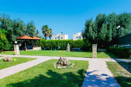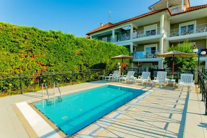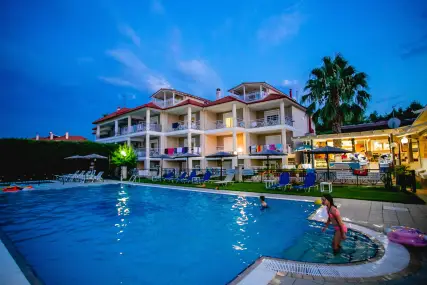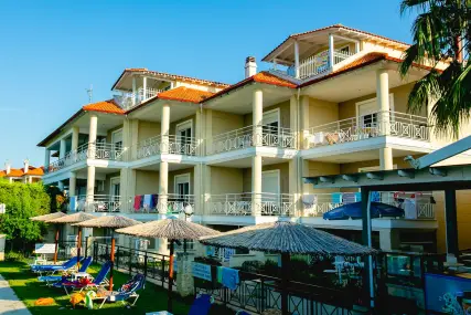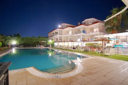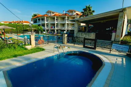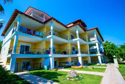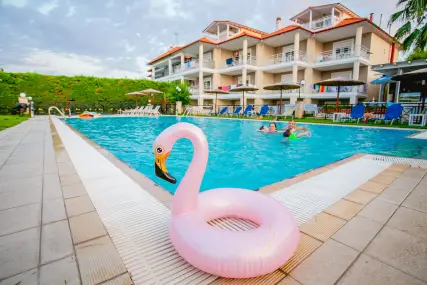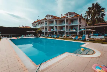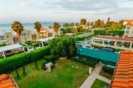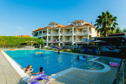 Golden Residence Family Resort е идеална дестинация за тези, които търсят релаксираща, комфортна почивка, в комбинация с отличната средиземноморска кухня, която курортът предлага. Самостоятелните апартаменти и апартаменти на мястото за настаняване са на 50 метра от морето, с капацитет от 30 до 60 кв.м. и имат Wi-Fi, A / C, плазмен телевизор, кухня и големи балкони и прозорци с неограничен изглед към морето. В околността има организиран ресторант 350 m2, който може да осигури цял ден, известно средиземноморско и традиционно гръцко меню и вина (закуска / полупансион), плувни басейни (голям / детски / джакузи), бар на басейна, паркинг, детска площадка и голяма градина. Апартаментите са със самостоятелни входове и самостоятелни тераси, които в комбинация със спазваните санитарни протоколи, предлагат комфортна и безопасна почивка. Освен това, краткото разстояние от селата Ханиоти и Пефкохори дава възможност на любителите на забавленията да избират между разнообразие от плажни барове, клубове, ресторанти, кафенета и др.