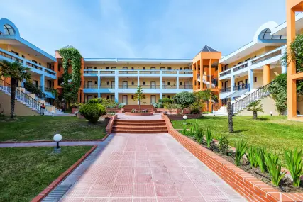 Among olive and pine trees, over the emerald waters of the Kassandra gulf, in Halkidiki, lies Atrium Hotel. It offers free shuttle service to the village and the beach, and has a pool with pool bar, free deck chairs and sun umbrellas. The comfortably furnished rooms feature satellite TV, private bathrooms with shower and hair dryer, as well as a fridge and air conditioning. All rooms have private balconies. The wide array of sports activities at Atrium Hotel includes a tennis court, pool, aerobics, beach volleyball, and pool table. Upon request guests can take diving lessons. Younger guests can play safely at the mini club.