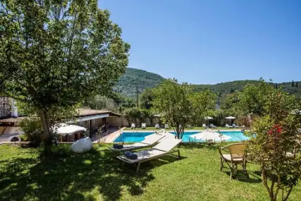 Paradise Inn Hotel, член на Across Hotels & Resorts, се намира в северозападната част на Корфу и в непосредствена близост до известния морски курорт Палиокастрица - той е заобиколен от маслинови горички и тучни зелени хълмове. Зачитайки културното наследство на острова и заобикалящата го среда, той ще се превърне в рай за летовниците, идеален както за романтично бягство, така и за семейна почивка. Хотелът се състои от 3 сгради, с общо 21 двойни стаи и 3 напълно оборудвани апартамента (просторна спалня, баня и тоалетна, напълно оборудвана кухня, пералня, хол с камина) с изглед към басейна или градината и гората. В хотела функционират ресторант, лоби бар, пул бар и открит басейн. Плувният басейн е еталонът на хотела и е разположен в прекрасна тучна градина. Тя е голяма, с мозаечно дъно и се задълбочава прогресивно. Плувният басейн и зоната на бара са добре оборудвани с чадъри и удобни шезлонги и са заобиколени от красивите градини на хотела. Желаем ви приятен престой в спокойна среда, на красивия остров Корфу !!