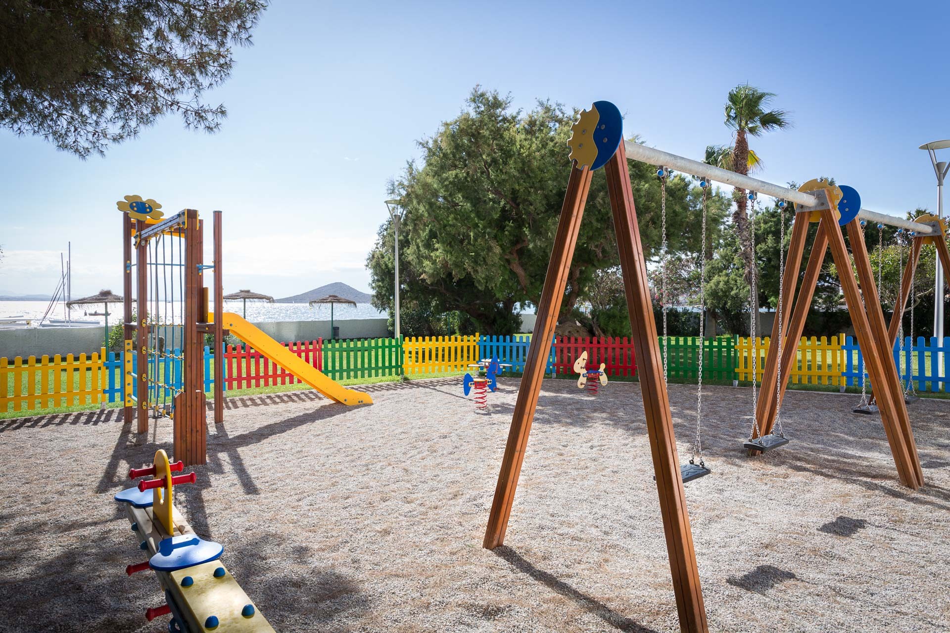 Местоположение: Хотелът се намира на самата плажна ивица, която разделя Средиземно море и лагуната Мар Менор. И от двете страни на този крайбрежен хотел се открива морски изглед.