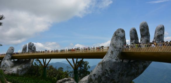 Закуска. Трансфер до Ба На Хилс – курортен комплекс разположен близо до Дананг (имате възможност да се возите на една от най-дългите лифтови дъги в света с дължина над 5 км., от която ще се насладите на спиращи дъха гледки от 1487 м н.в.), по пътя - посещение на някои от старите френски вили. Обиколката продължава с разглеждане на пагодата "Лин Унг" и с разходка по най-новата архитектурна забележителност във Виетнам - „Златния мост“, поддържан сякаш от божествени гигантски ръце. Обяд. Слизане с лифта до подножието на хълма. Трансфер до летището за полет до Сием Реап, Камбоджа. Трансфер до хотела. Нощувка.