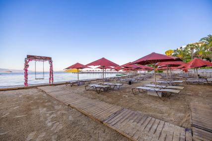 Собствен, пясъчен, платформа. Чадъри, шезлонги и плажни кърпи на плажа и при басейна - безплатно.