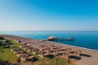Собствен, пясъчно - чакълест. Чадъри, шезлонги и плажни кърпи на плажа и при басейна – безплатно.