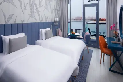 - Делукс стаи с изглед към морето (Deluxe Room Sea View): Също с площ от 53 кв.м., тези стаи предлагат панорамен изглед към Арабско море.