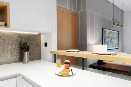 - Studio king bed: 30 кв.м, спалня, кухненски бокс, баня с тоалетна, душ.