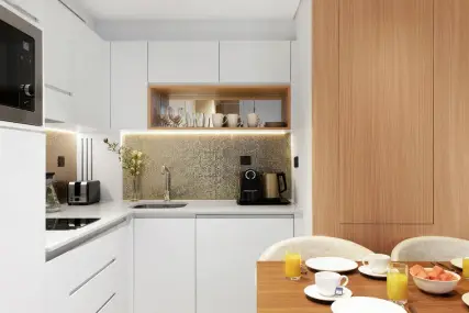 - Studio twin bed: 30 кв.м, спалня, 2 единични легла 90х200, кухненски бокс, баня с тоалетна, душ.