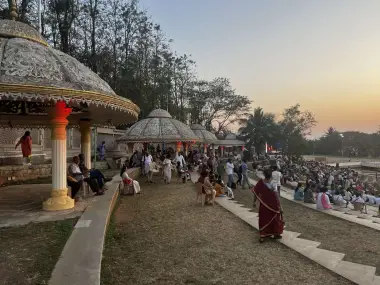 След като банята приключи, ще наблюдавате шоуто за обучение на слонове и ще се насладите на вкусен обяд на шведска маса с гледка към слоновете и тяхното езеро за къпане.