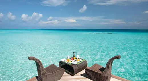Всяка от климатизираните вили се радва на собствена тераса за слънчеви бани с несмущавана от нищо панорама към Индийския океан. За пълното потапяне в лукса и комфорта за гостите е осигурено дизайнерско обзавеждане и удобства като iPod докове, плоскоекранни телевизори, минибар и уреди за приготвяне на чай/кафе.