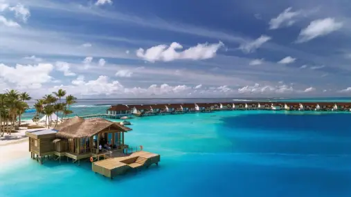 Елегантни вили над водата се намират над тюркоазения океан, докато вили на брега на главния остров са разположени сред буйни тропически градини. Повечето вили имат собствен басейн. Хотелът разполага и с 2 общи басейна, единият от които е само за възрастни.