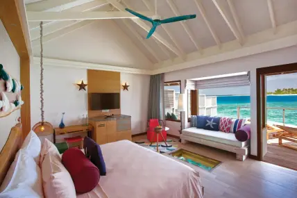 - 45 Water Villa (~78 кв.м) - водни вили. Състоят се от спалня с голямо легло и кът за сядане, съблекалня, баня с отделна вана и душ, тераса с шезлонги и достъп до водата. Максималното настаняване е 3-ма възрастни или 2-ма възрастни и 1 дете.