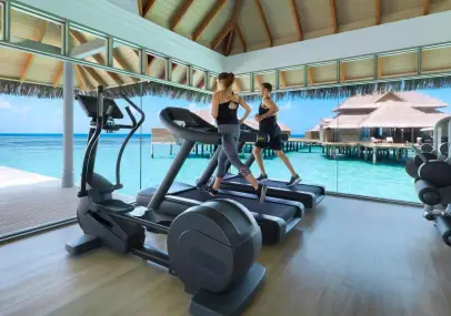 Гостите могат да поддържат форма и по време на ваканцията си във фитнес центъра над водата с изглед към океана за повече мотивация.
