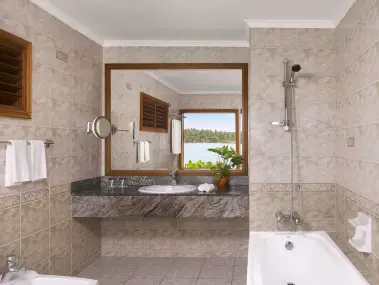 Всички вили са оборудвани с климатик, вентилатор, телевизор с плосък екран със сателитни канали, сейф, минибар, телефон, машина за кафе и чай, безплатен wifi, баня, душ и вана, безплатни тоалетни принадлежности, сешоар, гледка към градината.