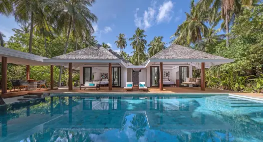 - 2 Three Bedroom Beach Pool Residence (~2736 кв.м) - крайбрежни вили с басейн. Състои се от просторен хол с трапезария, две спални с двойно легло king size, спални с отделни легла, съблекални във всяка спалня, три отворени санитарни възела. На терасата: басейн, шезлонги, люлки, кът за хранене и достъп до плажа. Максимално настаняване е 9 възрастни и 3 деца или 6 възрастни и 6 деца.