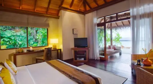 Заобиколен от бистрите води на Индийския океан, хотел Baros Maldives предлага първокласни, луксозни помещения за настаняване.които разполагат със собствени градини. От просторните вили се излиза на самостоятелна веранда с шезлонги и зашеметяваща гледка към океана. Вилите са оборудвани с: машина за еспресо, климати, луксизна баня с душ и вана, wireless и кабелен интернет, сейф, сателит, LCD телевизор.