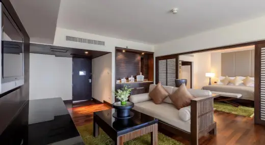 Хотелски комплекс Pullman Phuket Karon Beach Resort е заобиколен от красиви тропически градини и предлага спокоен престой в просторни стаи с прекрасен изглед към морето. Той разполага с 3 открити басейна и 5-звездни фитнес съоръжения, а също така предоставя безплатни уроци по гмуркане.