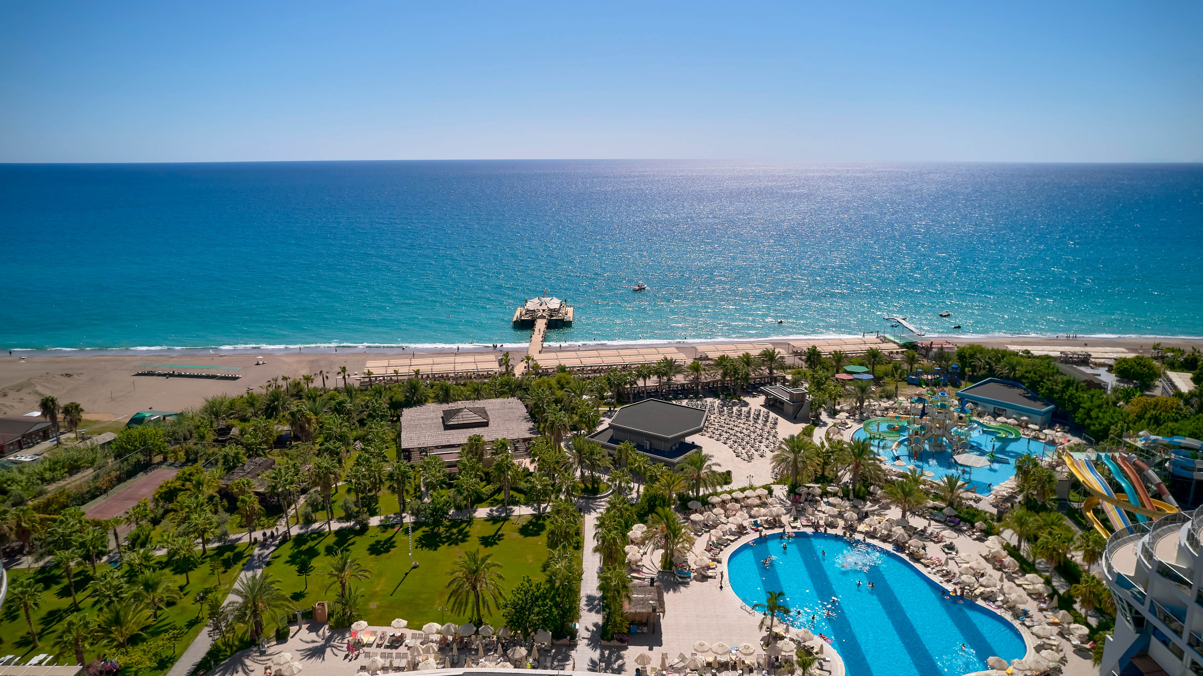 Основен ресторант, 5 а-ла-карт ресторанта – азиатски, турски, мексикански, италиански, рибен (1 безплатно посещение при минимум 7 нощувки, с предварителна резервация), сладкарница, снек бар, гьозлеме, 6 бара, диско, 2 открити и 1 закрит (отопляем) басейн, аквапарк, СПА център, магазини, конферентна зала, паркинг.