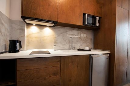 В стаите са на разположение: кухня (електрическа печка, фурна, тостер, кафе машина, чинии), климатик, сателитна телевизия (собствен сателитен телевизор, около 1000 канала), климатик, 2 телевизора с плосък екран (32 и 19 инча), анатомични матраци CocoMat, сейф (безплатно), хладилник, душ, сешоар, везни, Wi-Fi интернет (безплатно), веранда. При пристигане - бутилка вино.