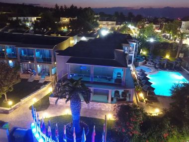 В Ханиоти, на 5 км. от Полихроно, на 5 км. от Пефкохори, на 90 км. от летище "Македония" в Солун. Триетажна сграда. В градчето има ресторанти, механи, барове, кафенета, великолепен пясъчен плаж и красив парк. Разтояние до плажа 100-300 м.